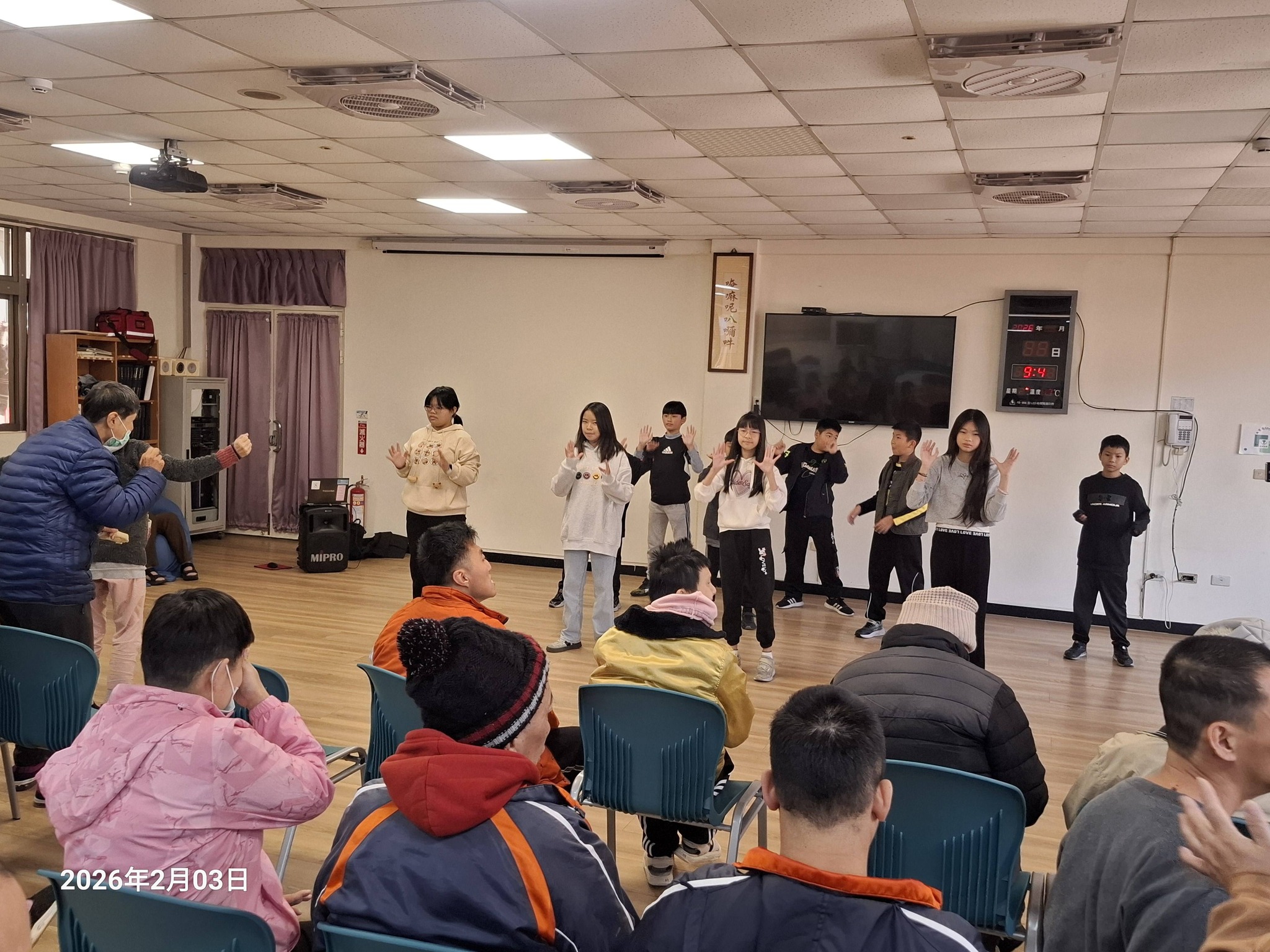 今天彩虹希望之家的張主任和念庭老師帶領中高年級的小朋友們前往華嚴啟能中心進行機構慈善表演活動,在春節前夕熱情關懷慰問社區心智障礙者。