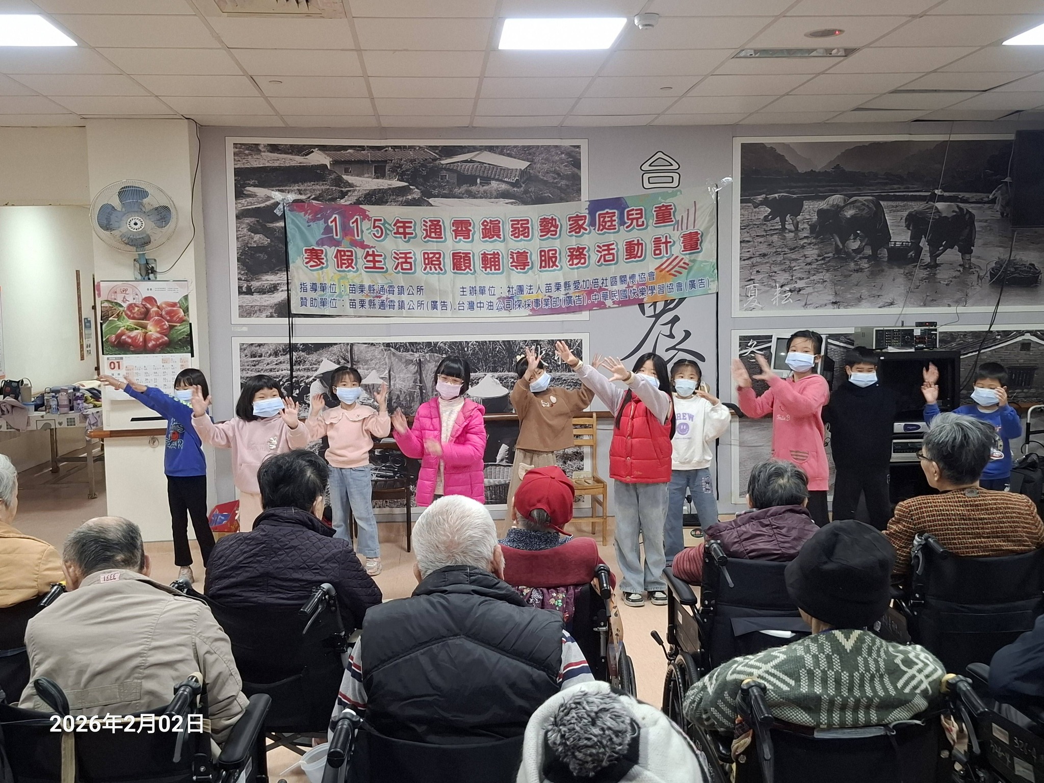• 照片說明文字🌈115.2.2(星期一)今天早上彩虹希望之家的張主任與念庭老師帶領低中年級的小朋友們前往海青老人養護中心進行機構慈善的春節慰勞義演活動,小朋友們帶來四首可愛活潑、青春動感的精彩表演曲目~
